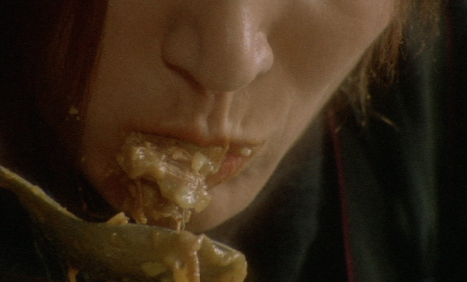 The grossness continues in the next scene as even Francesco himself throws up after watching Iris tucking into some sort of stew or porridge (it looks like sick) which reminds him of the hitchhiker soup in the bathtub.