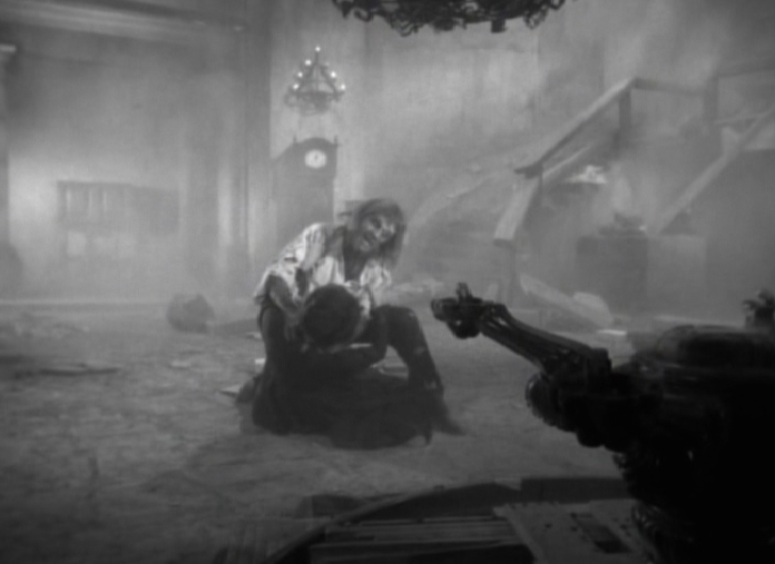 At the last moment, Emily snaps out of her witchy state and rather than pulling the lance out from the corpse, she plunges it in further, causing the wailing witch to scream a rather un-climatic scream I must say. Maybe they could have done with re-dubbing that. As the wailing witches fragile corpse crumbles to dust, so does the house. As the walls begin to crack and celling beams begin to fall, Selma orders Fred to kill Herbert and we are then treated to a fight which again sadly outstays its welcome. Considering how easily Daniel overpowered Fred earlier, I am surprised how difficult Herbert is finding this. Speaking of Daniel – where is he?!