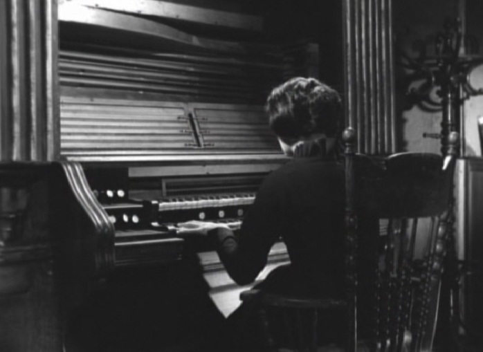 Selma begins playing an organ (an instrument, not a human organ… just to clarify) and this causes Emily to take Herbert downstairs to see her, almost as if the music has some sort of hold over her. Selma welcomes the pair with smiles and friendly chit chat, but things become awkward when Emily questions the strange crying she heard. Selma blames the noise on the wind but Emily keeps on pushing her auntie, questioning why she has Fred around the house, referring to him as a monster. It turns out Selma saved him the night he was going to the gallows. We don’t find out why Fred was going to the gallows; probably for being creepy. Emily comments that not only does Selma appear to have not aged at all since she last saw her but she also behaves almost like a different woman. Not deterred by Emily’s slightly aggressive tone of questioning, Selma asks Herbert to leave as she is eager to tell Emily about a woman from yesteryear who had extreme power and was called by many the “wailing witch”. Selma points to a painting of her in the room and explains that for years she has been studying the wailing witch and her ways and she now possesses the same power, having renounced the way of mortality and she will gain even more power with the help of Emily.