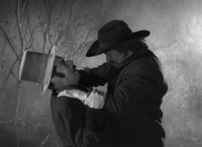 Selma queries why the policeman feels so sure that it is a maniac at large and not an animal. The policeman casually mentions that he ruled that out as the bodies of the victims were drained completely of blood. Because of course that behaviour is totally typical of humans and not animals! Plus they found a knife, which is the knife that the old man threw at the horseman. The policeman gives the knife to Selma and then leaves the house, without the knife! He leaves the knife on the table, which is something which I would have thought to be a key piece of evidence!
