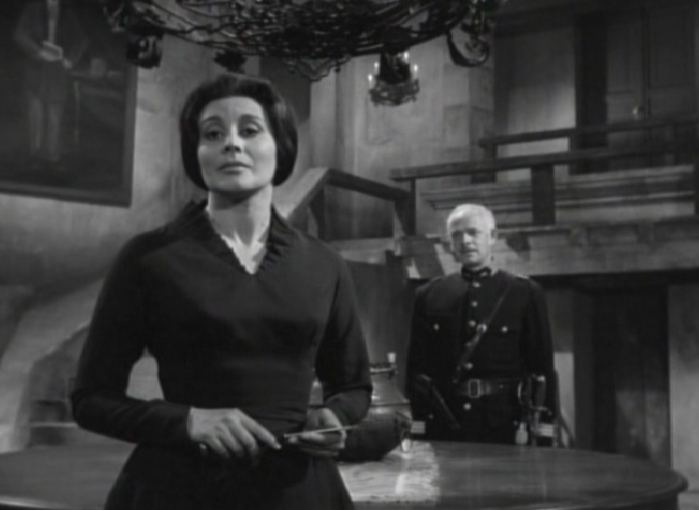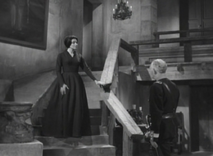 In the next scene, some policeman on horseback arrive at a large house (or castle maybe?) belonging to Selma, whose eyes appear to be normal now. One of the policeman goes inside the house and informs Selma of the murders that occurred nearby and asks Selma if she had heard anything. Predictably she denies hearing or knowing anything about what happened out in the woods.