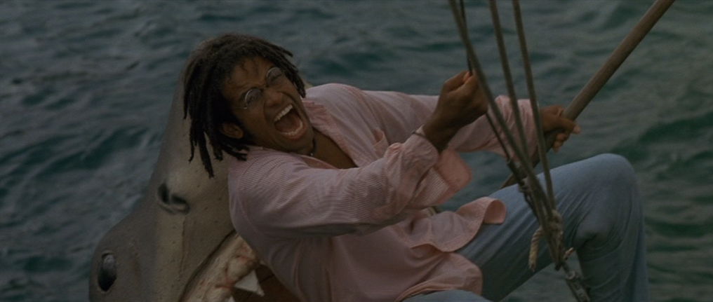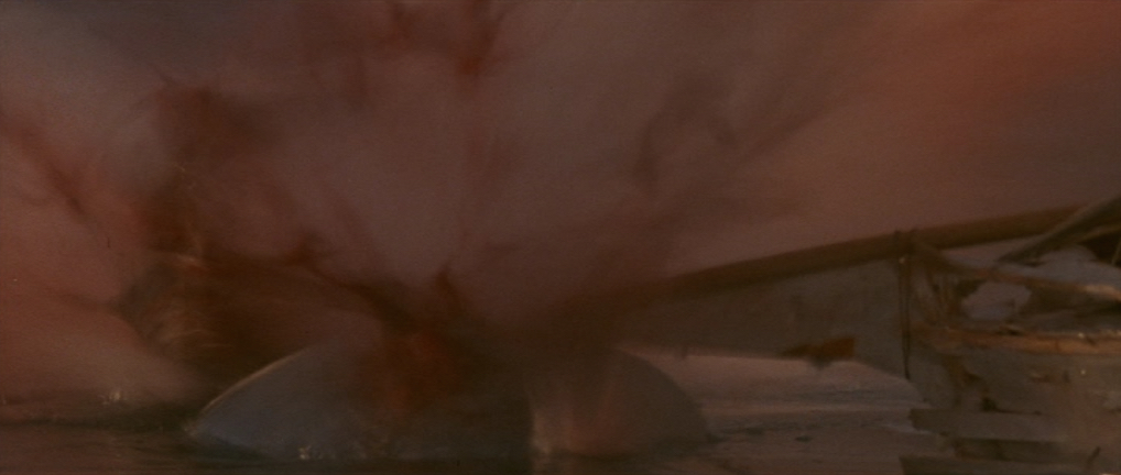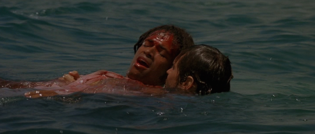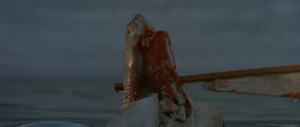It looks pretty violent which I’m guessing is the reason for its removal but it does leave the scene feeling slightly incomplete and it’s only with repeated viewings have I actually been able to understand what properly happens. In fact, I’m still not 100% sure if the shark does actually bite the wood or if it’s just the weight on the shark against it which makes it snap. Either way, there is no way Jake could possibly survive an attack like that.
