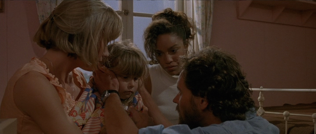The performances are a little bit weak and sadly Lorraine Gary is not strong enough to hold the film together. Lance Guest is pretty good as Michael, and rocking an excellent beard, but Mitchell Anderson is ear gratingly annoying as Sean, although does perform his death scene well. Michael Caine does slightly better, just being Michael Caine. Jake is probably the most likeable character so fair play to Mario Van Peebles. A special mention also to Judith Barsi who played Thea. Her real life story is incredibly sad as a year after this film was made she was murdered by her father. Child actors can often be hit and miss (with a large emphasis on miss) but Judith Barsi plays Thea well and her performance does not grate. The scene when she is comforted by her mum after being traumatised by the shark is sensitively handled and surprisingly downbeat and realistic.