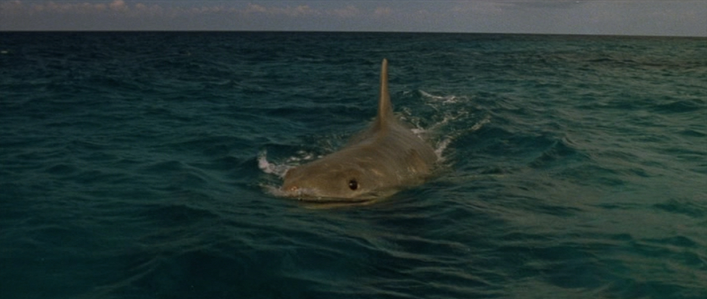 The shark eventually makes an appearance but sadly the shot used shows the shark coming towards the camera, fin out of the water, very very slowly in a very unthreatening manor. In “Jaws 3” there were lots of sped up footage of real sharks, which didn’t work. Real sharks move fast enough to appear threatening without tampering with the image, however some of the footage here could really do with running a bit faster. I realise that probably wasn’t possible due to the fact the waves would then also be sped up which would have given away the illusion. “Jaws 2” had some very effective fast shark footage which was very dramatic and it’s a real shame they weren’t able to replicate some of that here.