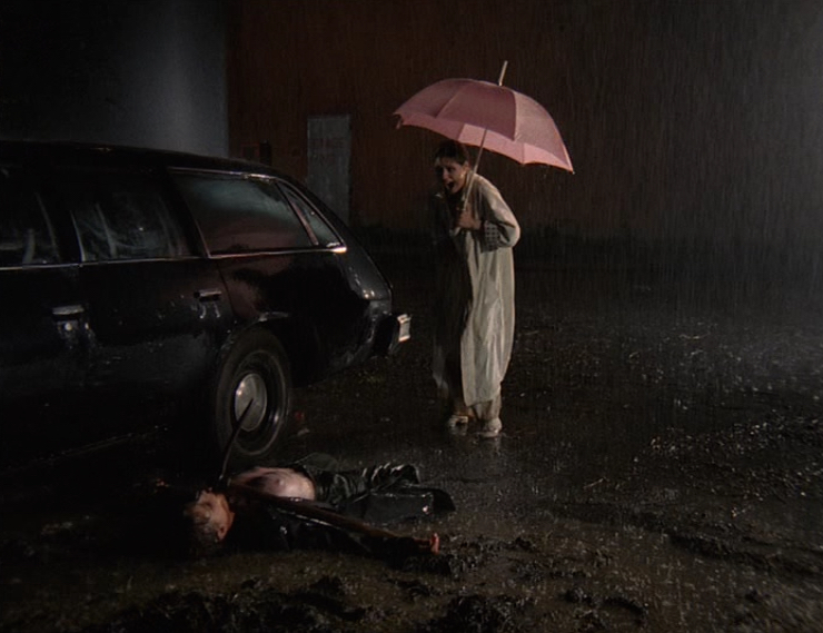 The nearest hospital to the theatre is a psychiatric hospital but that doesn’t stop the pair going in to get treatment from a rather tactile doctor who runs his hand up Alicia’s leg and up to her arse as he treats her ankle. Bizarrely Alicia doesn’t batter an eyelid! In fact, I’m not sure if the hospital might actually be staffed by the patients, seeing as we also see one of the nurses feeding her fish who seems to have some sort of sexual attraction to her pet. One of the patients at the hospital is Irving Wallace, a former actor turned murderer who just so happens to escape from his cell at the point Alicia and Betty are about to leave. The killer hides in their car with the pair unknowingly taking him to the confines of the theatre.